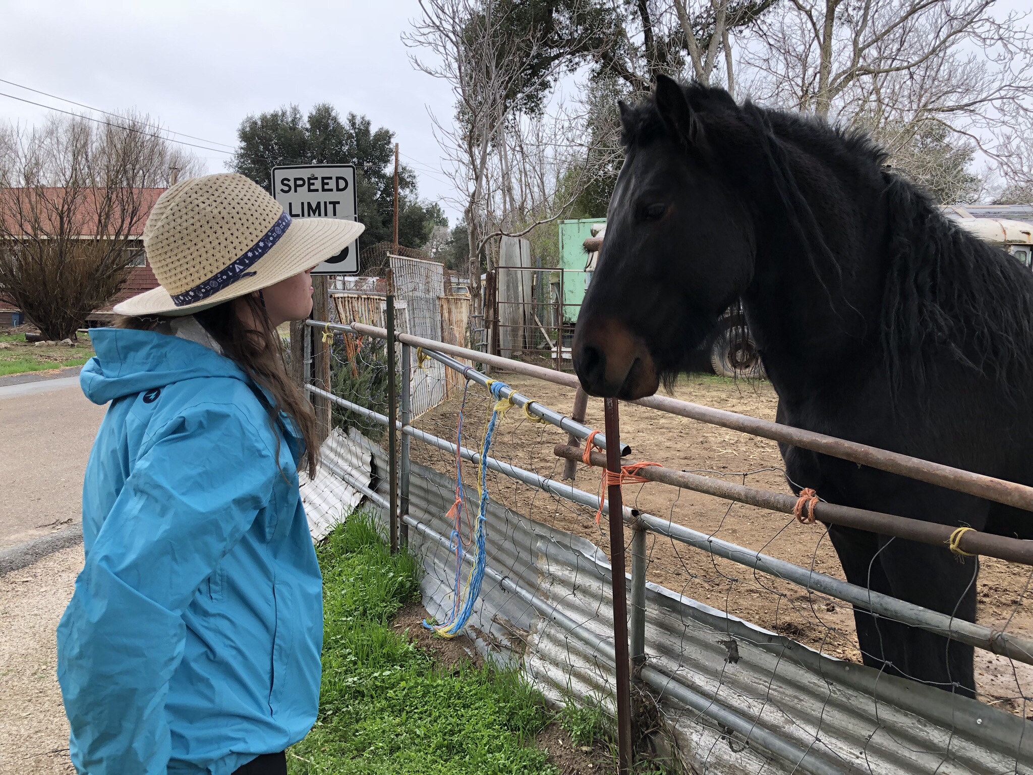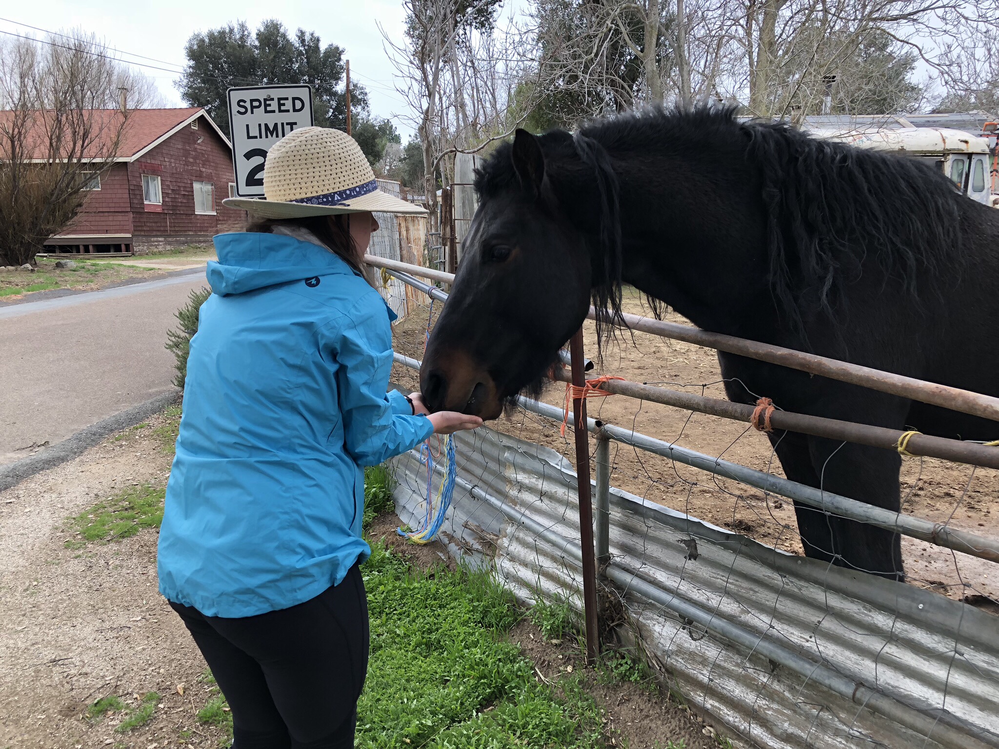 On the way back we saw an interesting Renaissance-esque property with lots of small buildings setup like its own little village, called Rancho de Zorros. A little further down the road, I had to stop to feed a horse grass. He was about as friendly as my mom’s dog, Little Man. Which is to say, he was an ass and tried to bite me every time he finished eating from my hand.