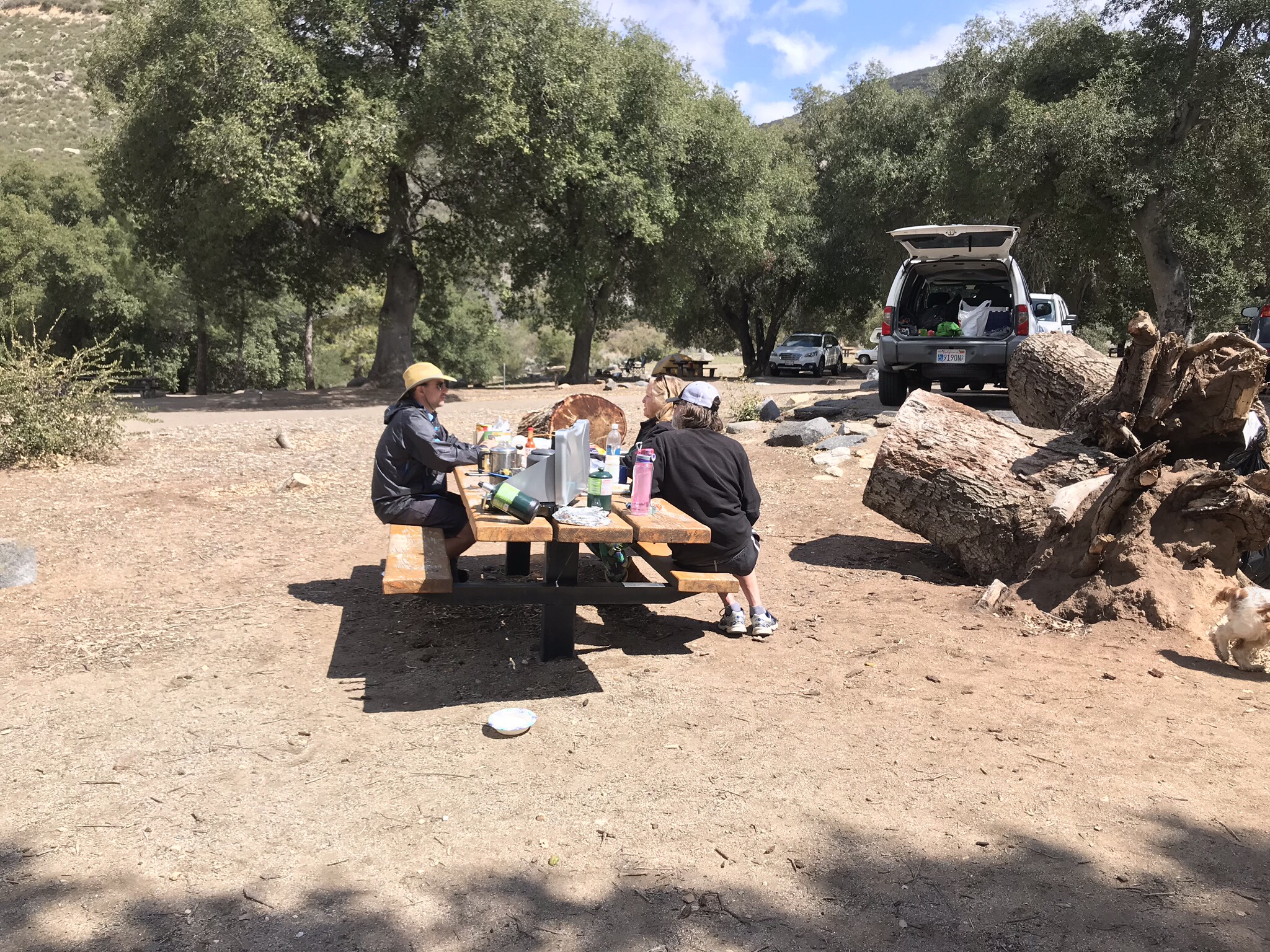 Later that day we met an older couple Robin and Toby while contemplating a hike down to Cibbets Flat campground for trail magic. We saw a few signs along the trail saying that there was food and drinks from trail angels “Tacos & Beer” and “Sparkle Bunny”. Robin and Toby decided to pass, but we couldn’t resist and made our way a few hundred feet down a 0.8 mile dirt road to Cibbets.